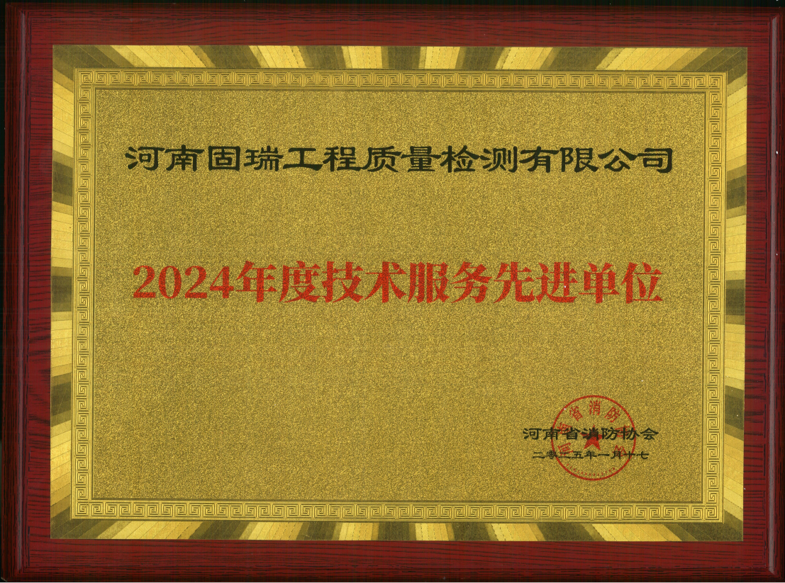 熱烈祝賀河南固瑞工程質量檢測有限公司榮獲河南省消防協會2024年度技術服務先進單位?。?!